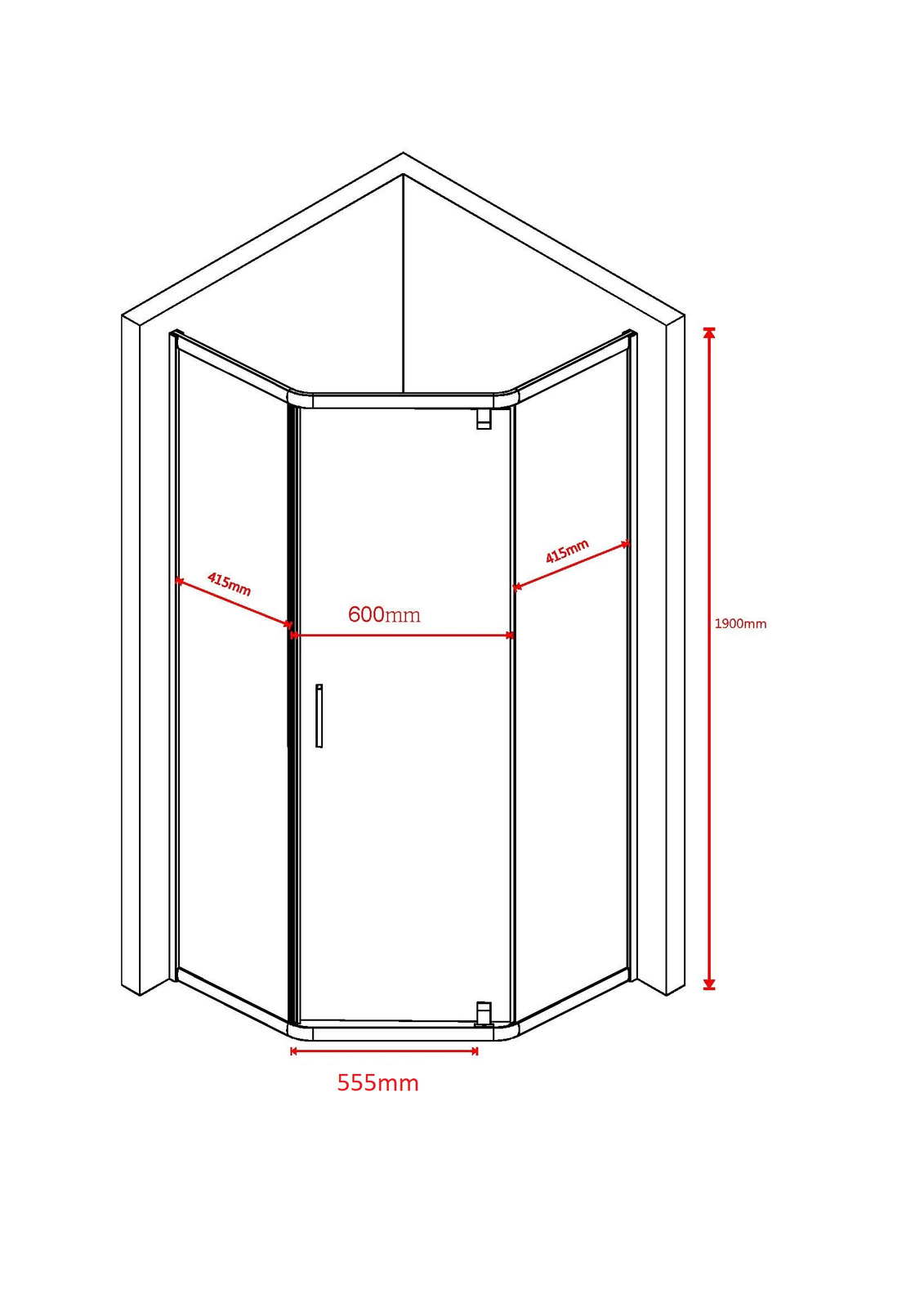 - wymiary kabiny bez brodzika : 90x90x190 cm